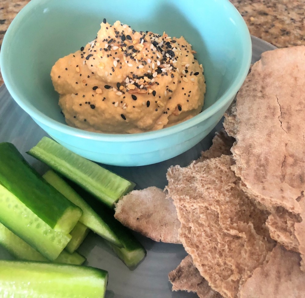 Hummus and Veggie Wraps- I wanted to make something light and easy for a change in the week’s heavy meals. I add homemade hummus with cucumber, lettuce, and tomato inside a lavash.
