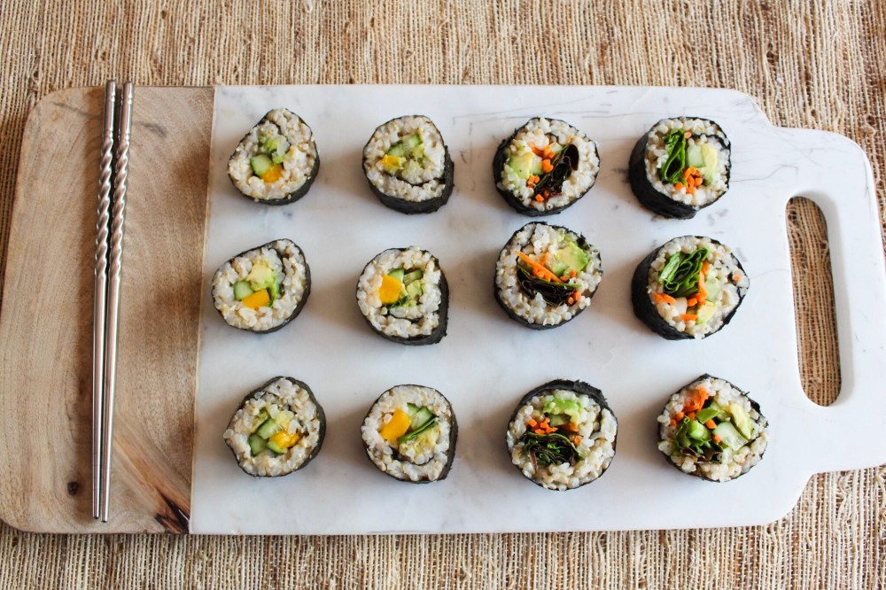 Veggie sushi is one of our top favorites to have regularly because we both love it! I’ve posted a few times about my favorite rolls to make at home because it’s not as hard as you think and SO much cheaper than going out for you weekly fix. I’m going to tell you exactly what I do to make these beautifully fresh vegan rolls at home to impress everyone.