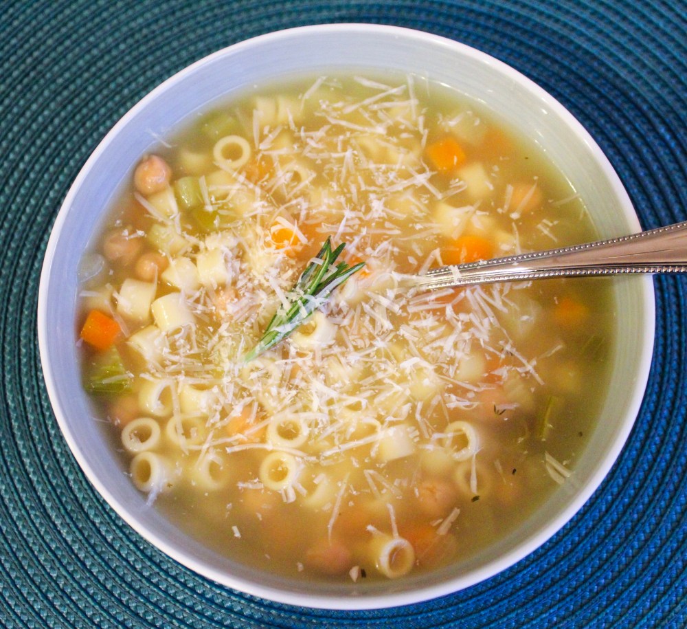 I wasn’t feeling great over the weekend and wanted to make something easy on my stomach. This Chickpea Noodle Soup was easy to make and even easier to eat! It tasted so good! I topped it with Violife vegan parmesan and we roasted some pita bread to dunk in. As always, I had some apples on the side. I made it with rosemary, garlic, and no chicken base so it was full of flavor and the ditalini pasta is perfect for soup! It doesn’t blow up and absorb the broth as much as other noodles and they’re little so you can get a few in every bite. I was feeling super lazy, so I even used frozen mirepoix as the base, which was so easy. If you want you can use regular onions, carrots and celery.