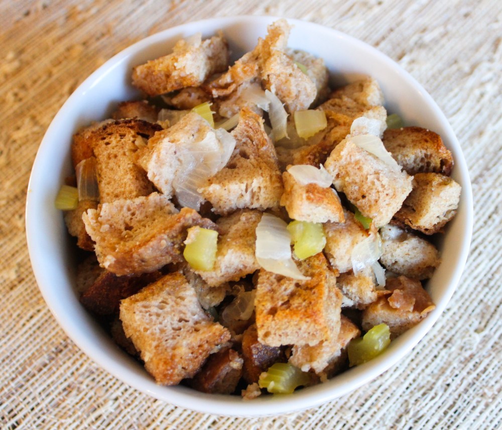 Grandpa’s Stuffing- This stuffing is so simple, but it was always my favorite thing at Thanksgiving. It’s a family favorite! This year I accidentally got whole wheat bread and so far it looks drier than usual so might not be the best, but hey, nothing that gravy won’t fix. I veganized my grandpa’s recipe which wasn’t hard to do so I can still enjoy it.